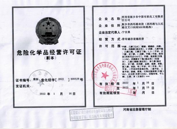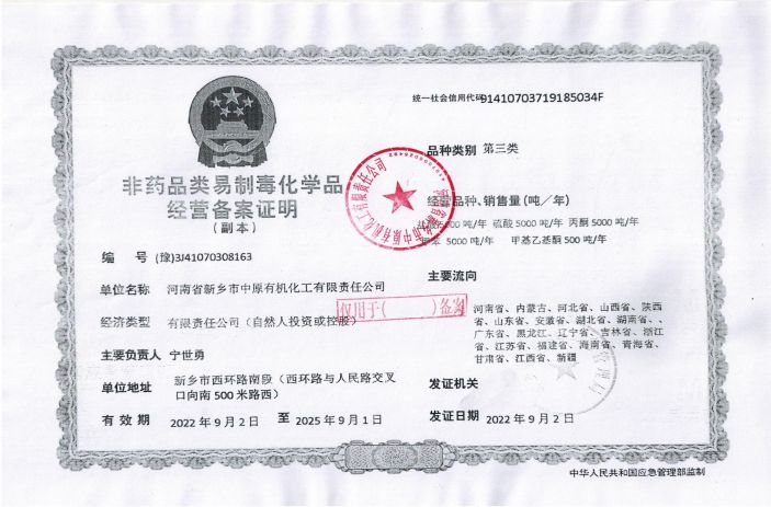 河南省新鄉(xiāng)市中原有機(jī)化工有限責(zé)任公司 多年 經(jīng)營(yíng)經(jīng)驗(yàn)